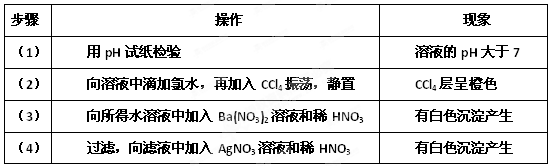 | (2) | 向溶液中滴加氯水,再加入CCl4振蕩,靜置 | CCl4層呈橙色 |