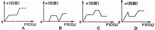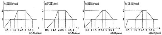 將足量的CO2不斷通入KOH、Ba(OH)2、KA1O2的混合溶液中,生成沉淀與通入CO2的量的關(guān)系可表示為:![]()