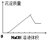在某無色溶液中緩慢地滴入NaOH溶液直至過量,產(chǎn)生沉淀的質(zhì)量與加入的NaOH溶液體積的關(guān)系如右圖所示,由此確定,原溶液中可能含有的陽離子是 ( )![]()