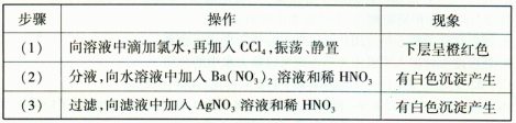 某無色溶液可能含有①Na+ ②Ba2+ ③Cl— ④Br— ⑤SO32— ⑥SO42—中的若干種,依次進(jìn)行下列實(shí)驗(yàn),且每步所加試劑均過量,觀察到的現(xiàn)象如下:![]()