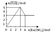 右圖表示在某溶液中滴加Ba(OH)2溶液時(shí),沉淀的物質(zhì)的量隨Ba(OH)2的物質(zhì)的量的變化關(guān)系。該溶液的成分可能是![]()