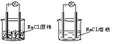 某化學(xué)興趣小組在家中進(jìn)行化學(xué)實(shí)驗(yàn),按照左圖連接好線路發(fā)現(xiàn)燈泡不亮,按照右圖連接好線路發(fā)現(xiàn)燈泡亮,由此得出的結(jié)論正確的![]()