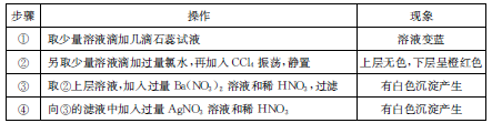 某無色溶液中只可能含有Na+、Ba2+、Mg2+、Cl—、Br-、SO2-3、SO2-4,對該溶液進行下列實驗, 實驗操作和現(xiàn)象如下表:![]()