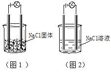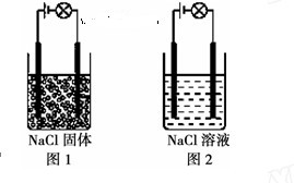 某化學(xué)興趣小組按圖示裝置進(jìn)行實(shí)驗(yàn),觀察到的實(shí)驗(yàn)現(xiàn)象為:圖1燈泡不亮,圖2燈泡亮,由此得出的結(jié)論正確的是![]()