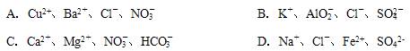 | C.Mg2+、Cu2+、NH4+、HCO3- | D.Mg2+、Cu2+、NH4+、Cl- |