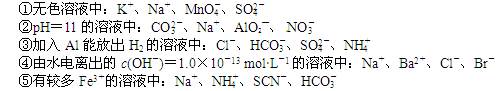 | B.加入Al能產(chǎn)生氣泡的溶液中:Fe2+、NO3 |
