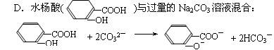 | C.向苯酚鈉溶液中通入少量CO2;C6H5O-+CO2+H2O→C6H5OH+HCO3- |