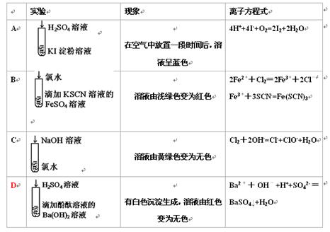 | A.稀硫酸與氫氧化鋇溶液反應 H++OH-= +H2O |