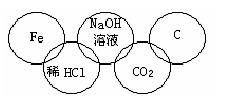小美在奧運(yùn)五連環(huán)中填入了5種物質(zhì),相連環(huán)物質(zhì)間能發(fā)生反應(yīng),不相連環(huán)物質(zhì)間不能發(fā)生反應(yīng)。你認(rèn)為“五連環(huán)”中物質(zhì)間發(fā)生的反應(yīng),沒有涉及的基本反應(yīng)類型和屬于氧化還原反應(yīng)的個數(shù)有![]()