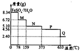 將8.34 g FeSO4·7H2O樣品隔絕空氣加熱脫水,其熱重曲線(樣品質(zhì)量隨溫度變化的曲線)如右圖所示。則下列說(shuō)法正確的是![]()