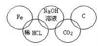 小美在奧運五連環(huán)中填入了5種物質(zhì),相連環(huán)物質(zhì)間能發(fā)生反應(yīng),不相連環(huán)物質(zhì)間不能發(fā)生反應(yīng)。你認(rèn)為“五連環(huán)”中物質(zhì)間發(fā)生的反應(yīng),沒有涉及的基本反應(yīng)類型是