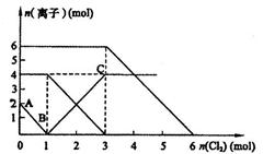 溶液中通入適量氯氣,溶液中某些離子的物質(zhì)的量變化如圖所示。![]()