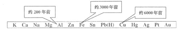 從石器、青銅器到鐵器時(shí)代,金屬的冶煉體現(xiàn)了人類(lèi)文明的發(fā)展水平。下圖表示了三種金屬被人類(lèi)開(kāi)發(fā)利用的大致年限。之所以有先后。主要取決于( )![]()