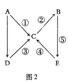 A、B、C、D、E五種中學(xué)常見(jiàn)物質(zhì)均含有同一種元素,且A為單質(zhì),有如圖2所示的轉(zhuǎn)化關(guān)系。則下列分析中不正確的是![]()
