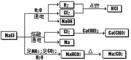 NaCl是一種化工原料,可以制備一系列物質(zhì)(見(jiàn)右圖)。下列說(shuō)法正確的是( )![]()