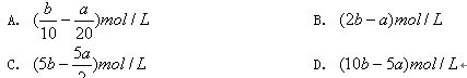 ,取一份加入含a mol氫氧化鈉的溶液恰好反應(yīng)完全,另取一份加入含b mol HCl的鹽酸恰好反應(yīng)完全,則該混合溶液中c(Na+)為( )![]()