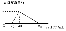 將一定量的鈉鋁合金置于水中,合金全部溶解,得到20 mL pH=14的溶液,然后用1 mol/L的鹽酸滴定,沉淀質(zhì)量與消耗鹽酸的體積關(guān)系如圖所示,則下列選項(xiàng)正確的是( )![]()