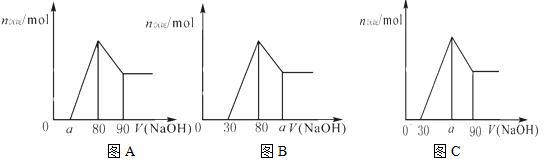 把一塊鎂鋁合金投入到1mol/L 鹽酸里,待合金完全溶解后,往溶液里加入1mol/L NaOH溶液,生成沉淀的物質(zhì)的量隨加入NaOH溶液體積變化的關(guān)系如下圖A所示。下列說(shuō)法中不正確的是![]()