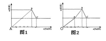 Mg2+和Al3+的混和溶液中逐滴加入NaOH溶液,形成沉淀的情況出現(xiàn)兩種圖示。圖1為甲同學(xué)繪制,圖2是乙同學(xué)根據(jù)實驗結(jié)果繪制,查閱沉淀生成和Al(OH)3溶解的pH情況如表。下列說法正確的是( )![]()