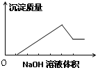 在某無色溶液中緩慢地滴入NaOH溶液直至過量,產(chǎn)生沉淀的質(zhì)量與加入的NaOH溶液體積的關(guān)系如右圖所示,由此確定,原溶液中含有的陽離子是![]()