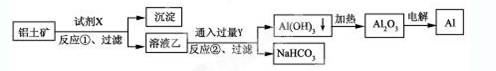 | D.反應(yīng)②的化學(xué)方程式為NaAlO2 + CO2 + 2H2O=Al(OH)3↓ + NaHCO3 |
