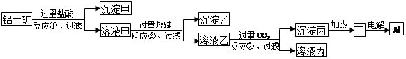 工業(yè)上用鋁土礦(主要成分為Al2O3,雜質(zhì)為Fe2O3和SiO2)為原料冶煉鋁的工藝流程之一為:![]()