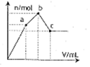 向100 mL 0.1mol·L—1硫酸鋁銨[NH4Al(SO4)2] 溶液中逐滴滴入0.1 mol·L—1Ba(OH)2溶液。隨著B(niǎo)a(OH)2溶液體積V的變化,沉淀總物質(zhì)的量n的變化如右圖所示。則下列說(shuō)法中正確的是![]()
