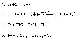 在以下4個(gè)反應(yīng)中,鐵元素的化合價(jià)變化與另外3個(gè)反應(yīng)不同的是( )![]()