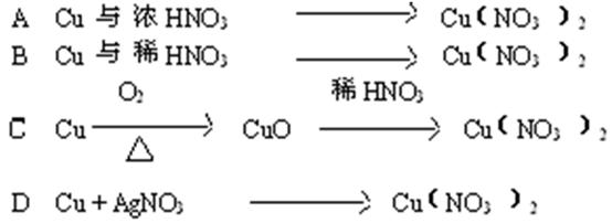 從經(jīng)濟(jì)效益和環(huán)境保護(hù)的觀點(diǎn)出發(fā),由銅制取硝酸銅最適宜的方法是( )![]()