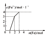 某稀溶液中含有Fe(NO3)3、Cu(NO3)2、HNO3,若向其中逐漸加入鐵粉,溶液中Fe2+濃度和加入鐵粉的物質(zhì)的量之間的關(guān)系如右圖所示。則稀溶液中Fe(NO3)3、Cu(NO3)2、HNO3的物質(zhì)的量濃度之比為![]()
