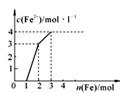 某稀溶液中含有Fe(NO3)3、Cu(NO3)2、HNO3,若向其中逐漸加入鐵粉,溶液中Fe2+濃度和加入鐵粉的物質(zhì)的量之間的關(guān)系如下圖所示。則稀溶液中Fe(NO3)3、Cu(NO3)2、HNO3的物質(zhì)的量濃度之比為![]()