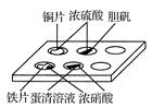 實驗室常采用點滴板來完成部分實驗,這樣既可以節(jié)約藥品的用量,又便于觀察實驗現(xiàn)象。圖中所示的實驗,點滴板上描述的現(xiàn)象正確的是![]()