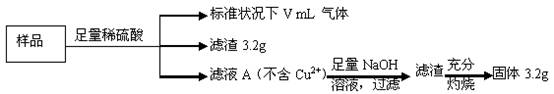 部分氧化的Fe-Cu合金樣品(氧化產物為Fe2O3、CuO)共5.76 g,經如下處理:![]()