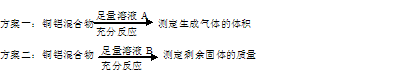 某化學(xué)小組為測(cè)定一定質(zhì)量的某銅鋁混合物中銅的質(zhì)量分?jǐn)?shù),設(shè)計(jì)了如下實(shí)驗(yàn)方案:![]()