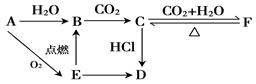 A、B、C、D、E、F 六種物質(zhì)有如下變化關(guān)系,E是淡黃色粉末,判斷:![]()