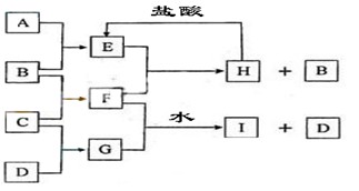.(12分)A、B、C、D是按原子序數(shù)由小到大排列的第二、三周期元素的單質(zhì)。B、E均為組成空氣的成分。F的焰色反應呈黃色。在G中非金屬與金屬元素的原子個數(shù)比為1:2.![]()