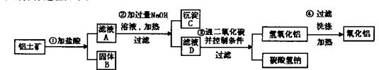 (10分)工業(yè)上用鋁土礦(主要成分為Al2O3、Fe2O3、SiO2)提取氧化鋁做冶煉鋁的原料,提取的操作過(guò)程如下:![]()