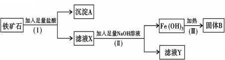 (6分)某化學(xué)興趣小組用鐵礦石(主要成分為Fe2O3,還有SiO2、A12O 3等雜質(zhì))提取。操作討程如下:![]()