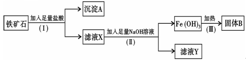 某化學(xué)興趣小組用鐵礦石(主要成分為Fe2O3,還有Si O2、A12O3等雜質(zhì))提取Fe2O3。操作討程如下:![]()
