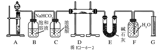 (14分)現(xiàn)有一定量含有Na2O雜質(zhì)的Na2O2試樣,用圖K2-6-2所示的實(shí)驗(yàn)裝置測(cè)定Na2O2試樣的純度。(可供選用的試劑只有CaCO3固體、6 mol/L鹽酸、6 mol/L硫酸和蒸餾水)![]()