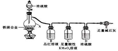 (12分)現(xiàn)有某鐵碳合金,某化學興趣小組為了測定鐵碳合金中鐵的質量分數(shù),并探究濃硫酸的某些性質,設計了下圖所示的實驗裝置和實驗方案(夾持儀器已省略),請你參與此項活動并回答相應問題。![]()