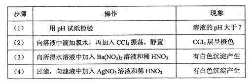 某無色溶液中只可能含有①Na+、②Ba2+、③Cl-、④Br-、⑤SO2-3、⑥SO2-4離子中若干種,依次進(jìn)行下列實(shí)驗(yàn),且每步所加試劑均過量,觀察到的現(xiàn)象如下:![]()