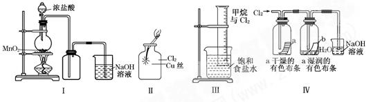 | D.Ⅳ 圖中:濕潤的有色布條能褪色,將硫酸溶液滴入燒杯中,至溶液顯酸性,結(jié)果有Cl2生 |