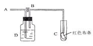 如圖,A處通入氯氣。關(guān)閉B閥時(shí),C處紅色布條無(wú)變化,打開(kāi)B閥時(shí),C處紅色布.條褪色。由此作出的判斷正確的是( )![]()