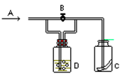 右圖是一種試驗?zāi)硽怏w化學(xué)性質(zhì)的實驗裝置。在A處通入氯氣,圖中B為開關(guān),關(guān)閉B時,C中干燥的紅色布條顏色無變化;打開B時,C處干燥的紅色布條顏色褪去。由此做出的判斷正確的是( )![]()