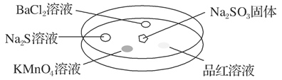 如圖,利用培養(yǎng)皿探究SO2的性質(zhì)。實(shí)驗(yàn)時(shí)向Na2SO3固體上滴幾滴濃硫酸,立即用另一表面皿扣在上面。![]()