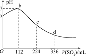 標(biāo)準(zhǔn)狀況下,某同學(xué)向100 mLH2S飽和溶液中通入SO2,所得溶液pH變化如圖所示,下列分析中,正確的是 ![]()