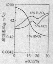 | C.Cr含量大于13%時(shí),因?yàn)槿N酸中硫酸的氫離子濃度最大,所以對(duì) |
