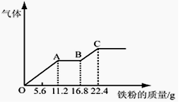 最多能溶解19.2 g(已知硝酸只被還原為NO氣體)。向另一份中逐漸加入鐵粉,產(chǎn)生氣體的量隨鐵粉質(zhì)量增加的變化如下圖所示。下列分析或結(jié)果錯誤的是![]()