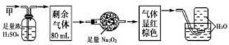 無(wú)色的混合氣體甲,可能含NO、CO2、NO2、NH3、N2中的幾種,將100 mL甲氣體經(jīng)過(guò)下圖所示實(shí)驗(yàn)的處理,結(jié)果得到酸性溶液,而幾乎無(wú)氣體剩余,則甲氣體的組成為( )![]()